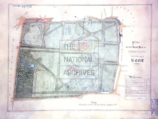 Whatever the reason for the Plan being made, the accurate portrayal of the trees in the Park does not seem to have been a priority as all the avenues tend to be shown as single rows of trees. It is the earliest Plan that has been identified that shows the removal of the rounds adjacent to the Blackheath Gate along with the southern end of the western of the two diagonal avenues that had previously radiated from it, the loss of the avenue being due to the annexing of part of the Park for the Park Ranger in 1806 when Montague House became the official residence.