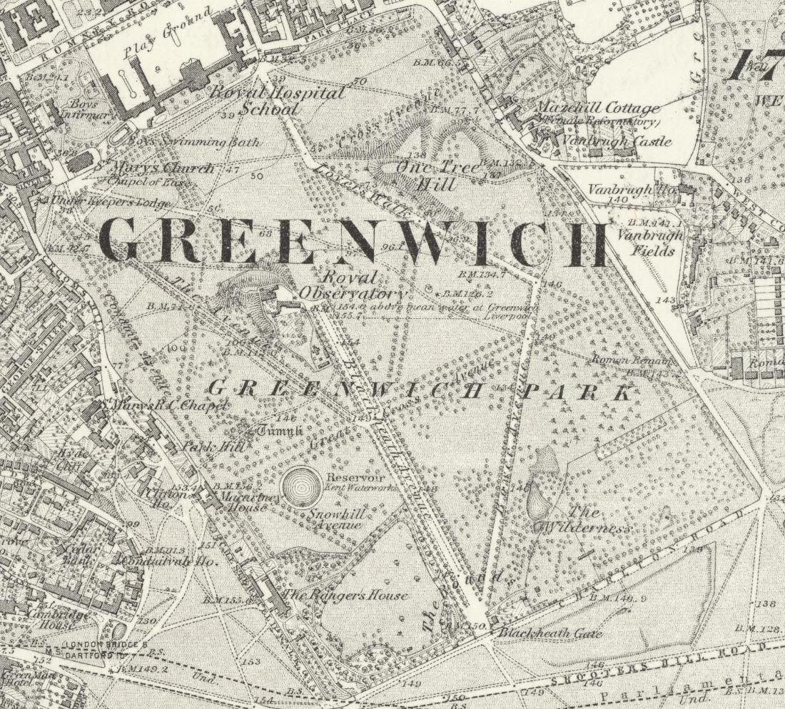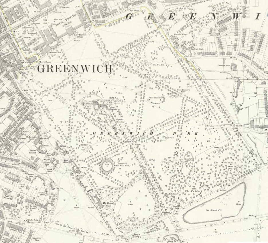 Greenwich Park as surveyed in 1867 Detail from an Ordnance Survey 6-inch map. Reproduced with the permission of the National Library of Scotland under a Creative Commons Attribution 4.0 International (CC BY 4.0) licence