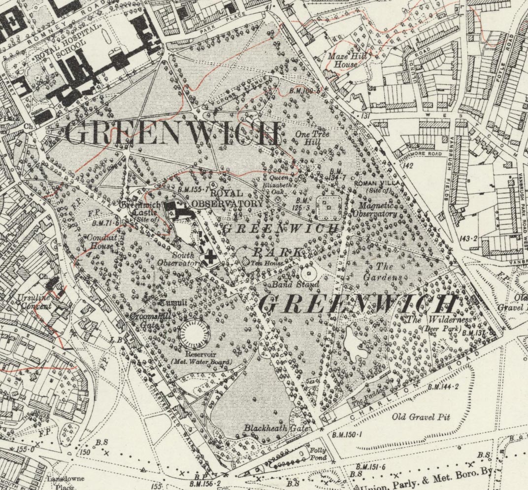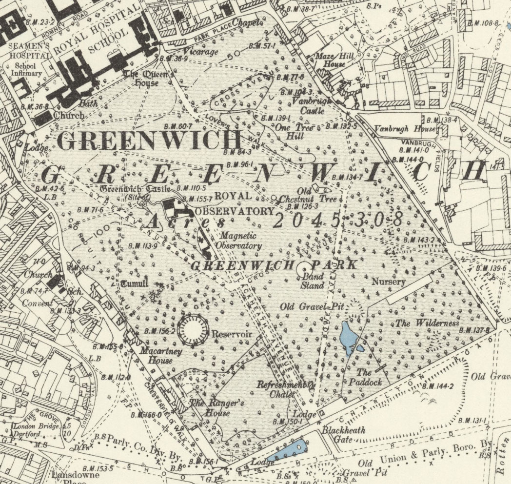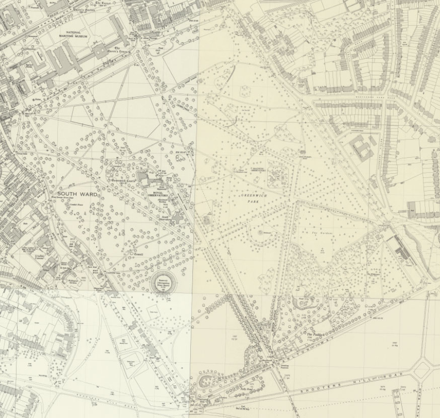 Greenwich Park from the 12-inch Skeleton Survey of 1848–50. Reproduced with the permission of the National Library of Scotland under a Creative Commons Attribution 4.0 International (CC BY 4.0) licence